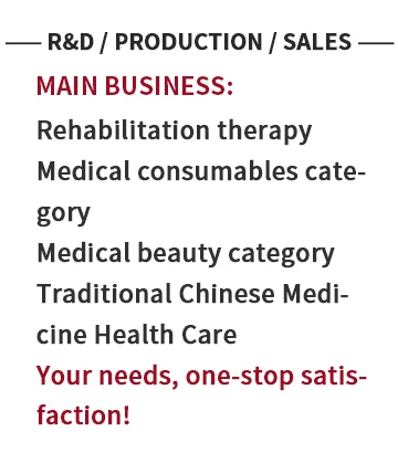 Productos principales:Dispositivo de terapia interferencial dinámica de frecuencia media, dispositivo de terapia de biorretroalimentación EMG, dispositivo de terapia de compresión neumática, dispositivo de terapia de electroporación de pulso de ultrasonido, dispositivo de terapia de radiación térmica infrarroja